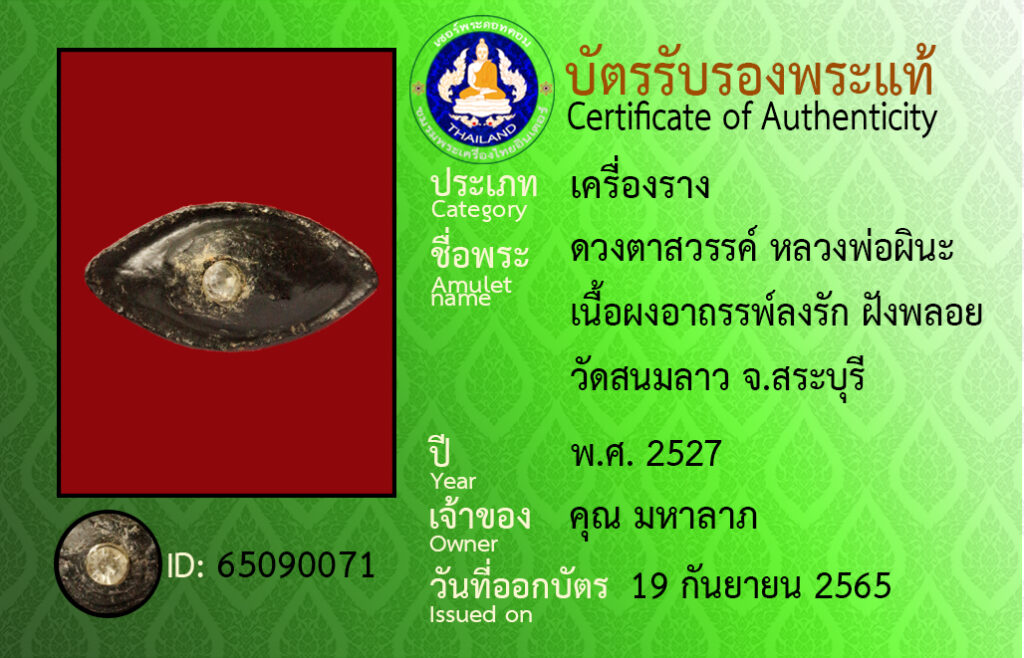 ชื่อพระ : ดวงตาสวรรค์ หลวงพ่อผินะ เนื้อผงอาถรรพ์ลงรัก ฝังพลอย วัดสนมลาว จ.สระบุรี
