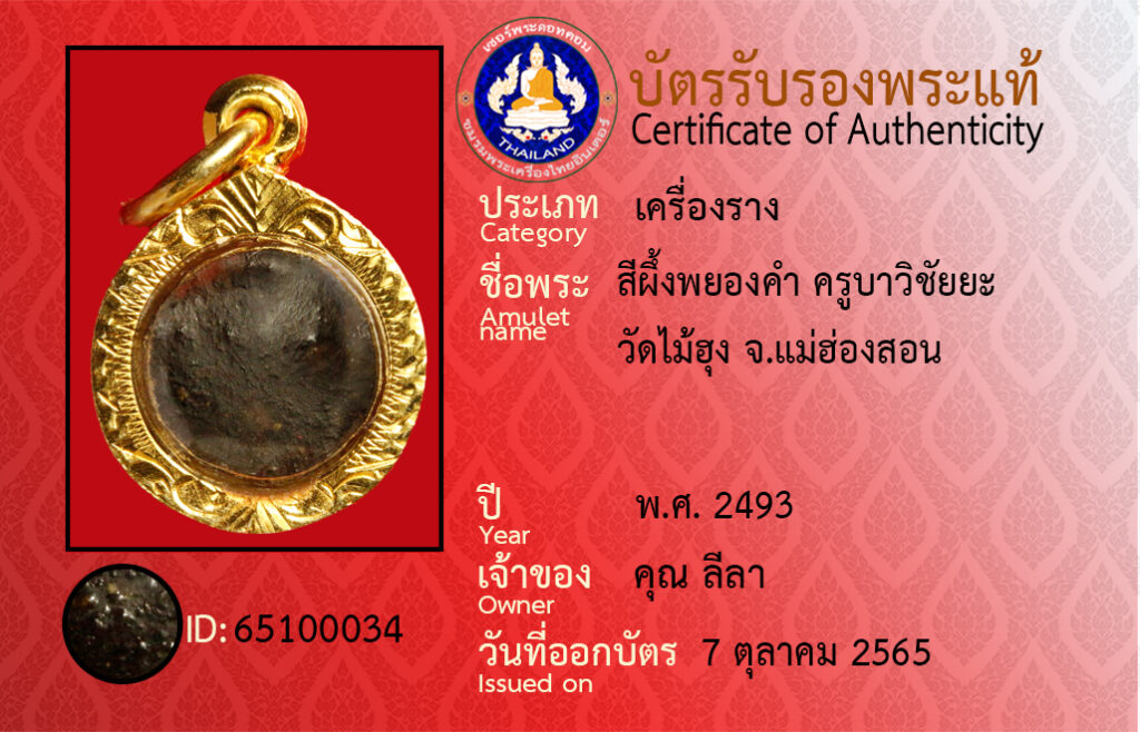 ชื่อพระ : สีผึ้งพยองคำ ครูบาวิชัยยะ วัดไม้ฮุง จ.แม่ฮองสอน