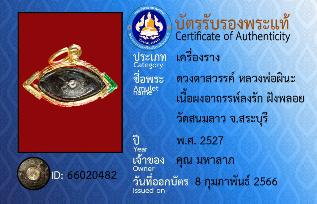 Amulet name :duang ta sa wan luang por pi na neua pong a tan long rak fang ploi wat sa nom lao sa ra bu ree